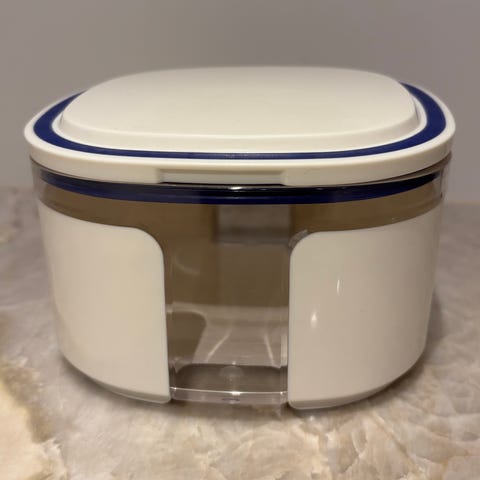 Tætsluttende låg, der har nogle små ubetydelige kosmetiske overflade mærker.