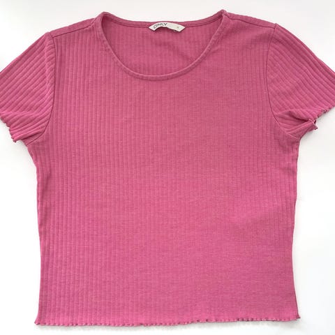 T-shirt Only str. M / 38 lyslilla, samme farve overalt. Brugt men pæn stand. Ann. nr. P829