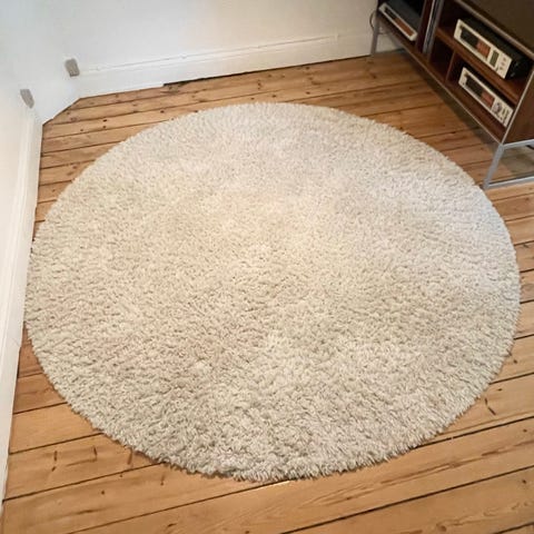 Jutetæppe med bølgekant fra Rugvista. Diameter 2 m.