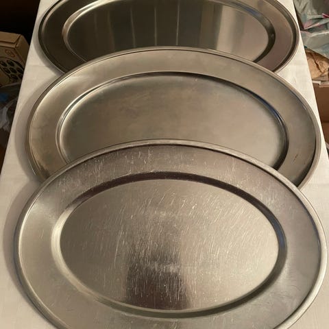 Praktiske Serveringsfade stål- nemme og lette at håndtere.