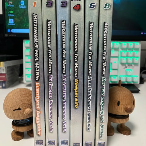 Sjældent komplet Motormus fra Mars sæt (DVD 1-8). DVD'erne er testet og kan afspilles fra start til slut.