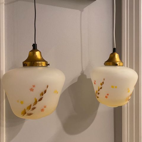 Tre glaspendler med messingophæng, Ø: 20 cm