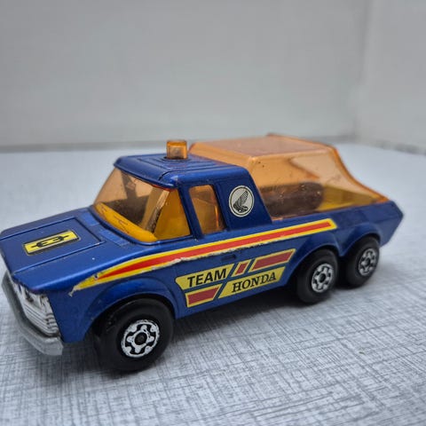 K 90 Matra Rancho, Matchbox Super Kings, Matchbox K 90 Matra Rancho 4 hjulstrækker fra 1982 i gul/sort/røde farver med ingen synlige defekter. Både anhængertræk og spejle sidder der endnu. Lidt afslag i malingen er der dog på en 34 år gammel bil. Køber betaler fragt, som er 60,- kr. med GLS.