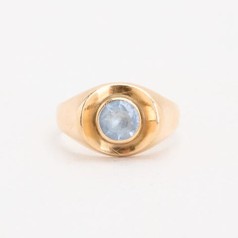 Signetring i 14K guld med blå sten, Str. 65-Guld