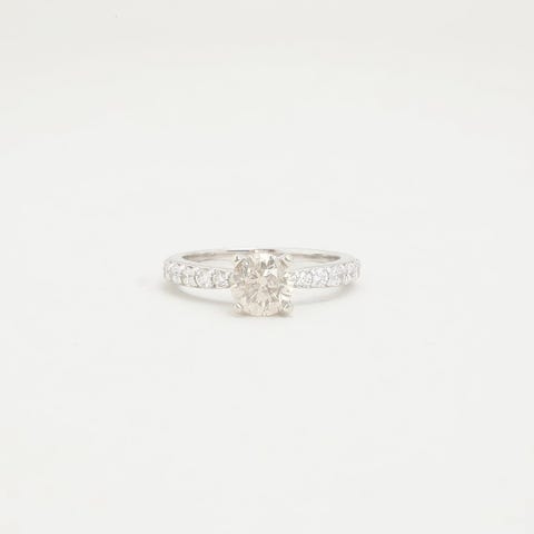 Solitairering med diamant (1.01 ct) i 18K hvidguld, str.