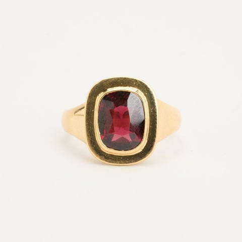 Signetring i 14K guld med lilla sten, Str. 57-Guld