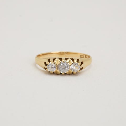 Trestensring i 9K guld med hvide sten, Str. 52-Guld