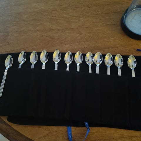 2 æsker med teskeer og to sæt med dessert skærer
