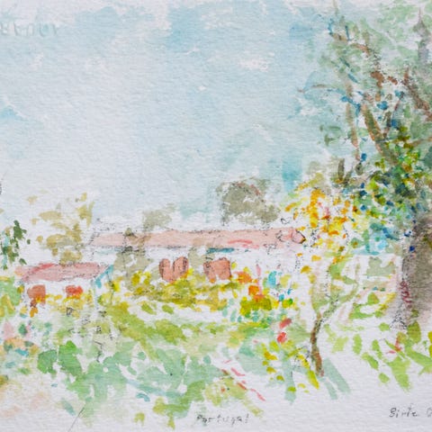 Birte Ohsten (1934-2019) har malet nogle af sine allersmukkeste og mest markante akvareller i Athen. Man kan se, hun har siddet foran sit motiv, når hun har malet det. Det er så levende, nærværende og stærkt. Hun var friluftsmaler og uddannet på Det Kgl. danske Kunstakademi.