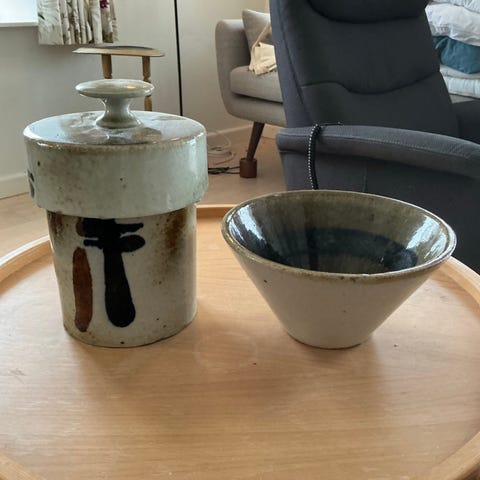 Stentøj Krukke med Blåt Blomstermotiv