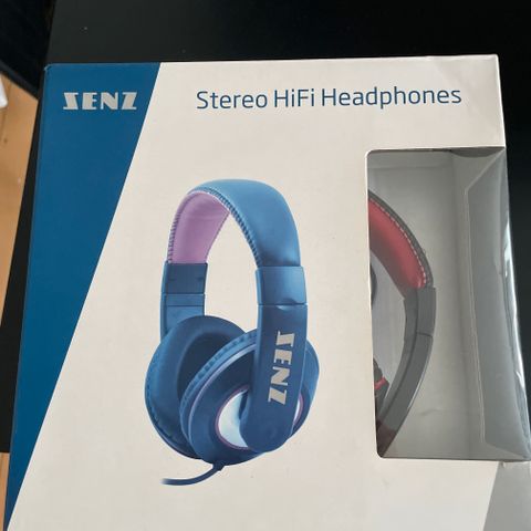 Stereo hovedtelefoner med lydstyrkekontrol og stereo/mono omskifter på ledningen.