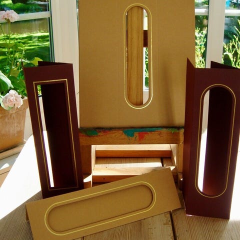 Passepartoutramme til husholdningsæske, Lav dine egne personlige omslag til husholdningsæsker med disse passepartoutomslag. Monter dem med papirklip, silkemaling, akvarelmaling, foto eller børnenes tegninger. Vil gøre lykke at anvende sådan en personlig tændstikæske.
