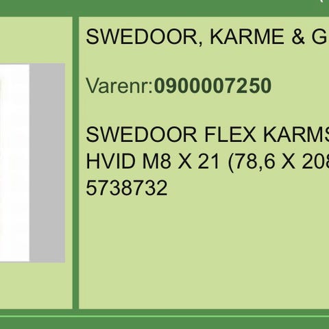 Swedoor karmsæt t/BD30/35db Venstre. 886x2089x147mm, hvidpigmenteret/hvid