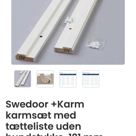 Karmsæt fra Swedoor til DB30 / 35DB. M9x21, 147mm dyb. Passer til M9x21 branddøre og lyddøre BD30/35DB. Uden bundstykke. Nypris over 2.000 kr. Kan afhentes i 2850 Nærum, Lyngby eller 2605 Brøndby.
