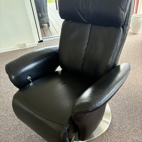 Easy Swing stol 7357 er en elegant og stilren lænestol betrukket med okselæder i farven, Antracite.