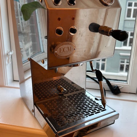 Lækker espresso maskine fra ECM. Købt fra ny 6.2022. Har kørt ca. 4 daglige espressoshots siden. Udelukkende med filtreret vand.