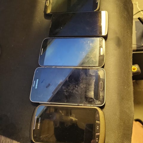 Sæt med 8 uprøvede telefoner. Sælges som reservedele. 3 Samsungs, 1 iPhone, 1 Sony Experia, 3 Motorolas. Åben for bud.