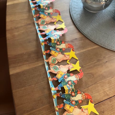 Juleremsen er mindst 60 år gammel. Den er i generelt god stand alderen taget i betragtning. Har været hængt op ved hjælp af tegnestifter, så der er små huller rundt i kanten. Herudover er der et par mindre rifter. Juleremsen har været rullet sammen, så der er ingen folder.