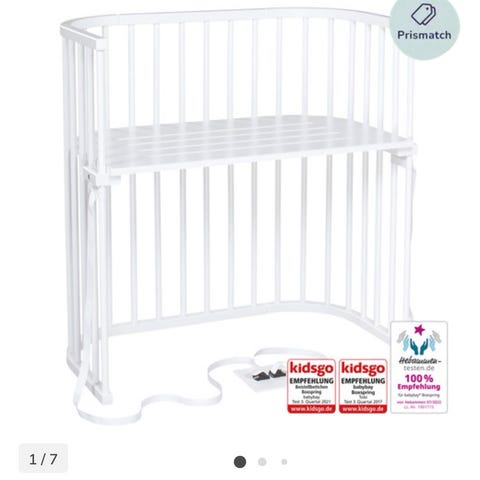 Babybay bedside crib boxspring i hvid. Super fin seng. Rullemadras og madrasbeskytter er kun brugt i 2 måneder og der har ingen uheld været på dem. Madrassen har lidt små pletter, mest på bagsiden. Sengen har lidt små skræmmer - se billeder.