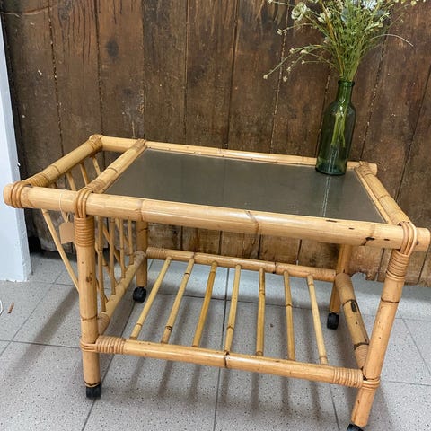 Severingsvogn/rullebord/barbord i bambus,med glasplade og hylde i sjenneflet.