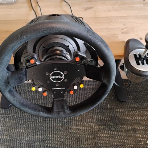Sælger et helt fint rat og pedaler og gearstang fra trustmaster. Fejler ingenting. Sælger det fordi jeg har bedre ting at tage mig af og ikke bruger det mere.