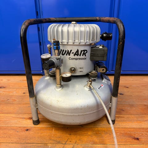 Har været brugt i privat hjem til oppumpning af cykler. Ikke kørt mange timer trods alder. Virker perfekt. Meget støjsvag kvalitets kompressor.