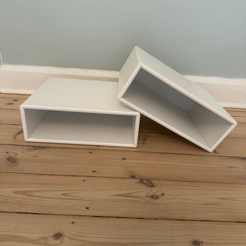 Rigtig fint og enkelt natbord som kan hænge ved siden af senge, natbordet/hylden har en skuffe i flotte farver designet af Peter J. Lassen. Natbordet er enkeltheden selv, og det er ideelt til opbevaring af de mest nødvendige ting. På den måde har du dine ting lige ved hånden. Designet er tidløst og klassisk, og du vil derfor have glæde af bordet i mange år fremover. Natbordet er fremstillet af 12 mm tykke MDF-plader.