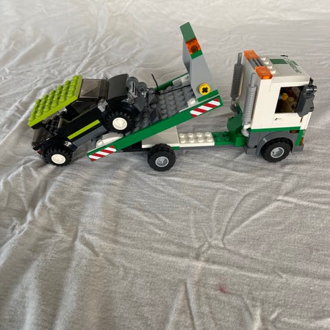 LEGO City lastbil i blå farve, lavet af plast. Modellen har detaljer som antenne og åben lad, egnet til leg og samling.