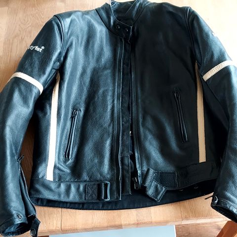 Ozon Dame Læderjakke i sort farve. Jakken er fremstillet af læder og har lynlåslukning foran samt lynlåslommer. Indvendig foret med stof med dekorative detaljer. Jakken er designet til kvinder og har en klassisk pasform. Er brugt 3 gange og står som ny