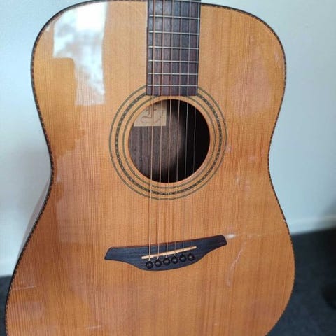 Jeg har passet rigtig godt på guitaren og selvom den har været brugt flittigt, har den kun meget få ridser/skrammer og ikke noget af betydning. Jeg er ikke ryger og guitaren har stadig en duft af træ.