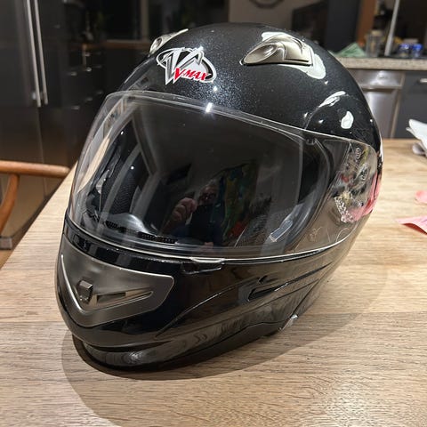 Og Hjelmen er ganske ny og en størrelse XL
