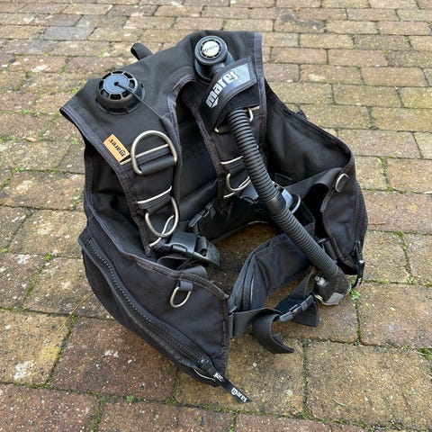 Mares Dragon BCD i størrelse M, sort farve. Fremstillet til dykning med integreret back protection system. Solid og lækker bcd med justerbare stropper og flere lommer til opbevaring. Materialet er holdbart og designet til at give komfort og sikkerhed under vandet. Den ene blylomme mangler.