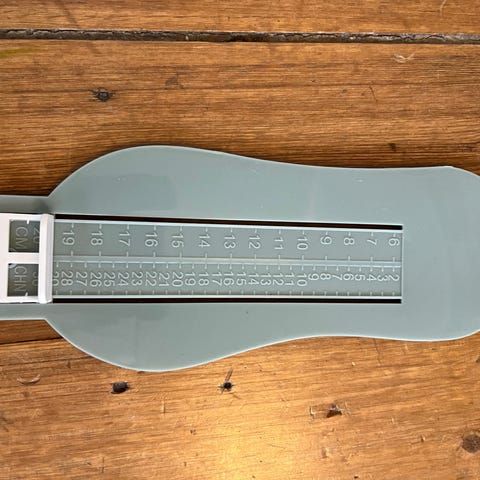 Til at måle størrelse på fødder og fodtøj indeni, træ.