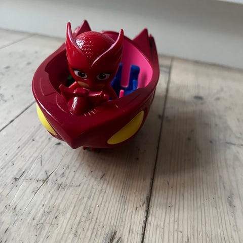 Pyjamasheltene PJ Masks legetøjsbil i grøn farve med en medfølgende figur. Legetøjet er fremstillet i plastik og er designet til børn. Figuren kan placeres i bilen, som har plads til flere små figurer. Velegnet til leg og rollespil.