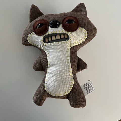 Monster Bamsefjäril børnelegetøj lavet af plast med farverige detaljer. Legetøjet har en karakteristisk ansigtsudtryk med store øjne og flerfarvede tråde som hår. Egnet til børn som en underholdende og visuelt stimulerende genstand.
