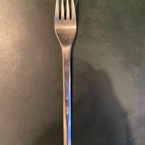 Georg Jensen gaffel fremstillet i blankt rustfrit stål. Gaflen har et enkelt og funktionelt design af Grethe Meyer