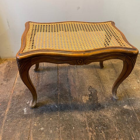 Et skønt gammelt klap sammen bord / skammel. I lyst træ og fransk flet. I god stand. Med lidt charmerende patina.