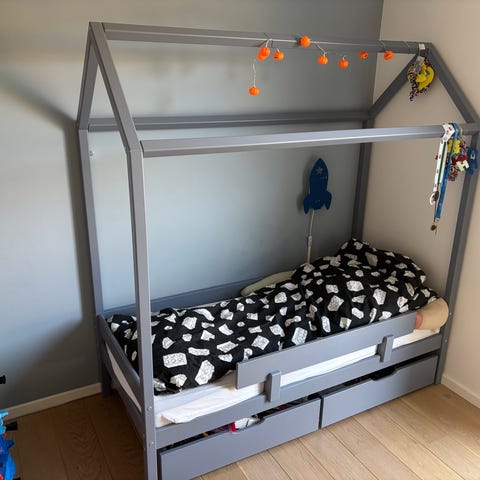 Sengen har en robust ramme og et enkelt, funktionelt design, der passer perfekt til ethvert børneværelse. Madras medfølger.