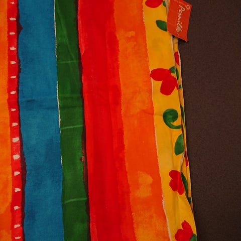 Mønstret er gennemgående på hele længden af stoffet. Bagsiden er uden mønster