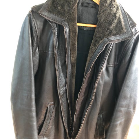 Skindjakke, str. M, Bison, Jakken er 100 % som ny. Mærket er BISON. Der medfølger også en pelskrave, der er aftagelig med lynlås. Farven er mørkebrun. Under halv nypris