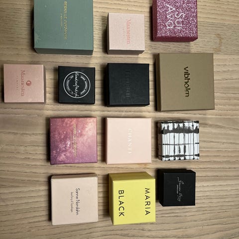 Hejsa sælger denne bunke med forskellige smykkeæsker de har brugt spor men kan sagtens bruges til opbevaring af smykker sælge samler og kan sendes på køberens regning eller afhentes i Horsens ☺️