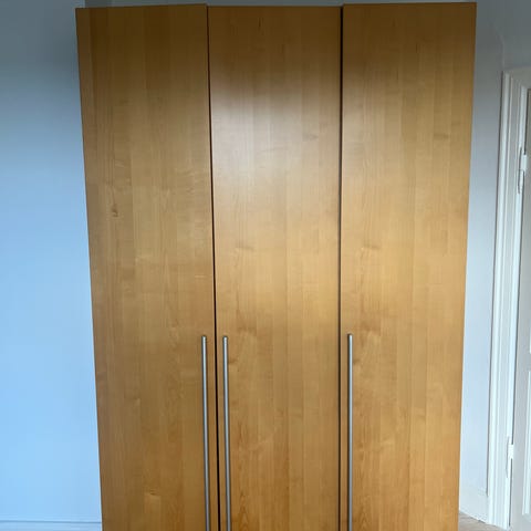 skab i lys træfiner. Den ene side er der hylder og den anden en bøjlestang. Hurtig afhentning prioteres .Skabet står i stuelejlighed og man kan holde med trailer lige ved opgangen. Se også mine andre møbel annoncer, ved køb af flere møbler gives rabat. Køber står selv for transport. Lejligheden det står i skal være tømt medio januar, så giv et bud