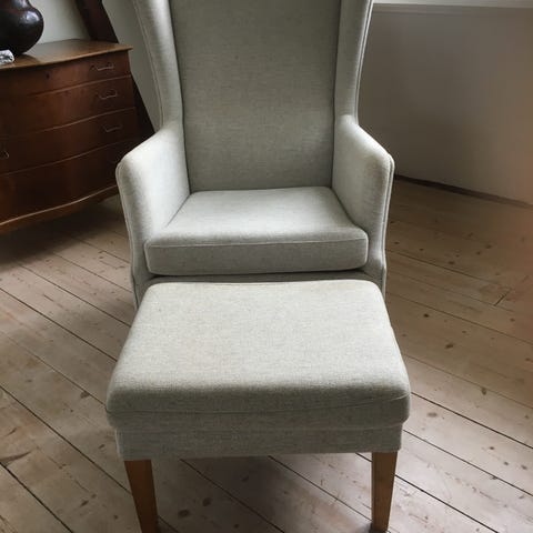 Nielaus, Jade, øreklapstole, med puf, grå, 2 stk.