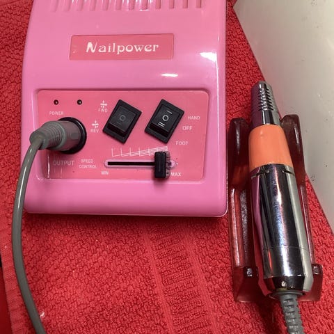 Produktet er en elektrisk manicure/ pedicure enhed med forskellige tilbehørsdele. Det er enkelt at opbevare i et gennemsigtigt etui. Håndtaget er ergonomisk designet og har en blå knap. Materialerne inkluderer plastik og metal.,Afhentes i:,Røde Kors Kolding (621),Bemærk at mail, chat og beskeder ikke besvares, og varen skal købes på knappen "Gå til varen"