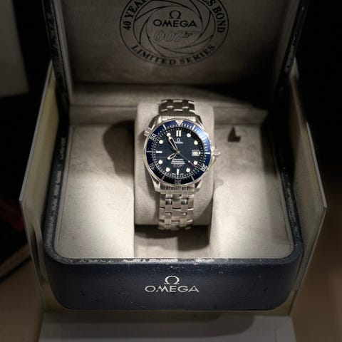 Et klassisk Seamaster-design med blå bølge skive, datovisning kl. 3 og roterbar krans i stål. Uret har en 41 mm stålkasse, der giver et solidt og velafbalanceret udtryk.