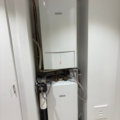 Brugt Bosch Gasfyr + Bosch Vandbeholder 60 Liter, info kan ses på billeder, mål: Vandbeholder - H84 B44 D37,3, Gasfyr - H84,3 B44,5 D36, dette sæt bliver solgt samlet Varenummer: 1373