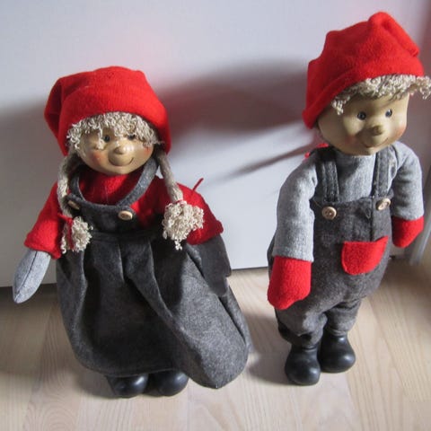 Nisser med porcelænshoveder, 2 stk.+ fletstol SAMLET PRIS