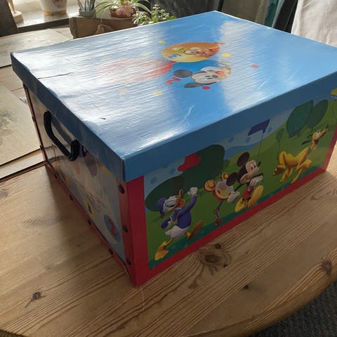 Æske medfølger. Der er ingen skader, og der har ikke været skrevet på banneret.