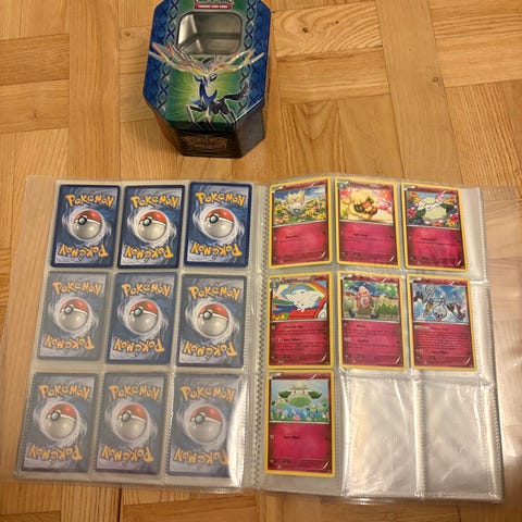 Pokemon kort, 106 kort med kasse, 100 alm kort og 6 stk glimmer kort
