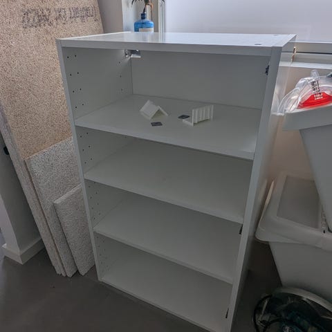 Fem ikeaskabe med messinggreb